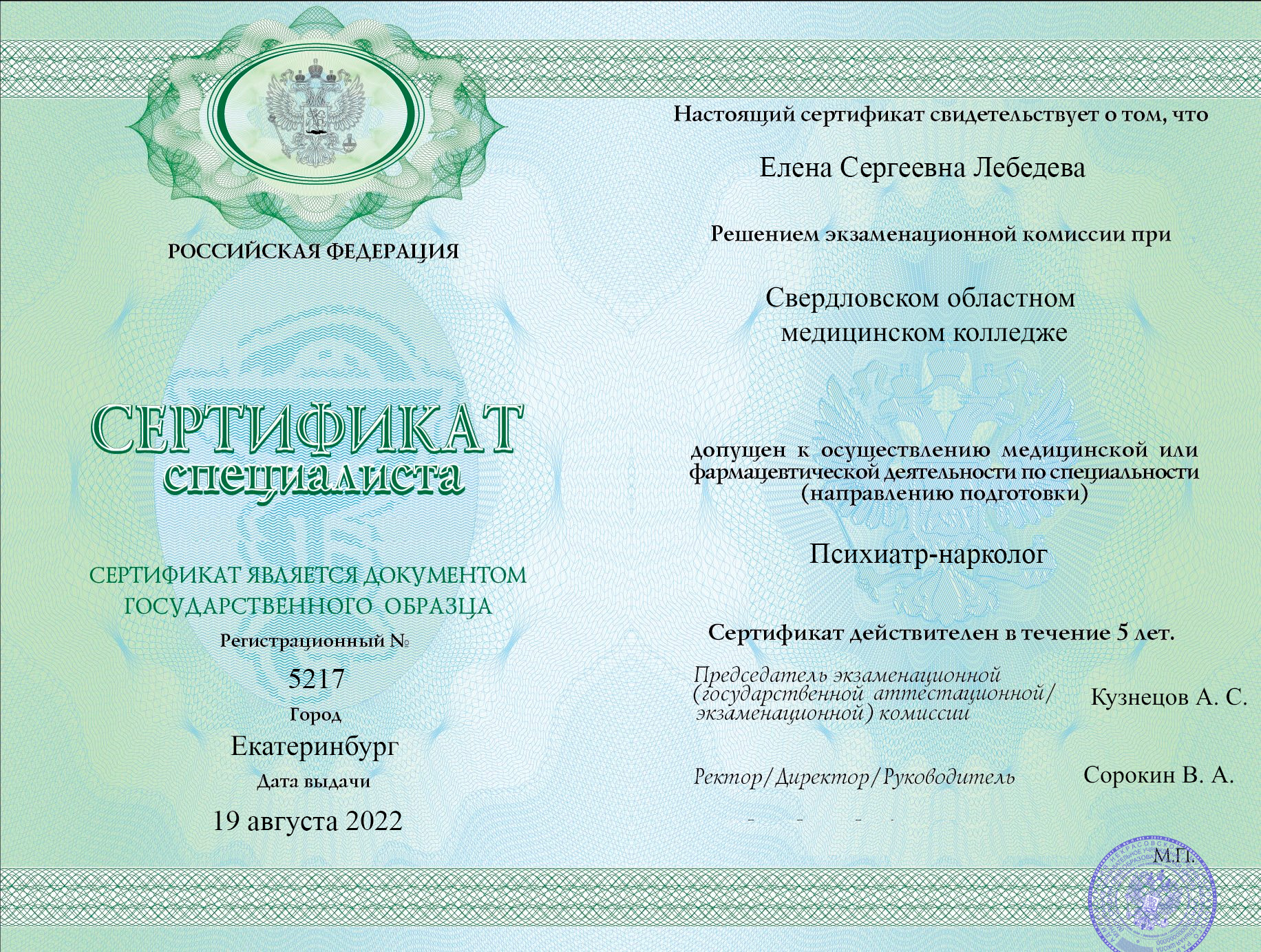 Елена Сергеевна Лебедева врач нарколог клиники доктора Стукаловой в Стерлитамаке